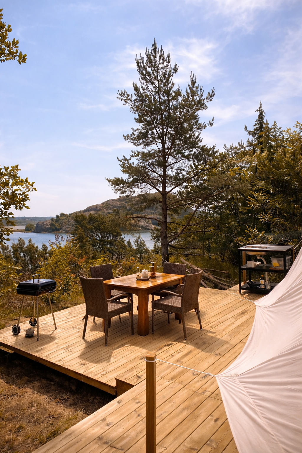 Hos oss bor du i vackert inredda tält som ligger helt avskilda i natursköna västkustmiljöer perfekt för dig som vill ha en lugn, naturskön och privat upplevelse